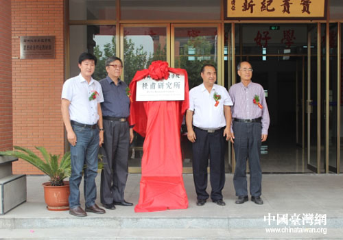 成功学院院领导及嘉宾为杜甫研究所成立揭牌。(图片来源:郑州市台办)