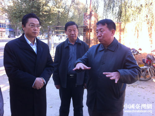 中国台湾网11月1日阜新消息 10月30日下午,市委副书记张鹏在市台办的陪同下,到太平区红玛瑙广场视察了阜新台湾大厦和台湾风情商业街建设项目进展情况。在工地现场,张鹏副书记认真听取了阜新崇光房屋开发公司总经理蔡铁光的汇报,询问了项目施工和即将完工大楼的投入使用情况和项目建设遇到的困难,并同台湾菩提原生集团董事长陈石华等招商团队人员进行了交流。