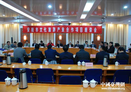 随后,在安阳市政府召开的文化旅游产业项目座谈会上,安阳市市相关部门向考察团介绍了市重点文化旅游项目的基本情况,并与在座的台商广泛交流,洽谈投资意向。(中国台湾网、安阳市台办联合报道)