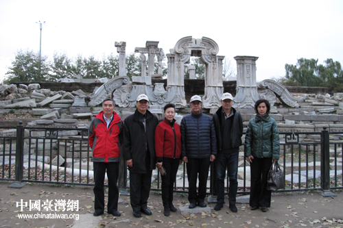 台湾参访团一行到海淀区圆明园遗址公园参观考察。(图片来源:北京市海淀区台办)