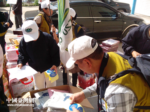 基金会志工为物资贴标签。(图片来源:五华台办)