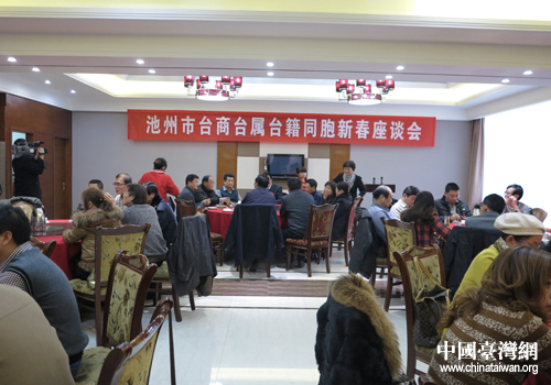 中国台湾网1月30日池州消息 1月29日下午,池州市委、市政府在华润天成酒店举行台商、台属、台籍同胞新春座谈会。市政府副市长、市委秘书长桂林,市政协副主席、市委统战部长李跃宜,在池台商、台属、台籍同胞代表以及有关部门主要负责人参加了座谈会。