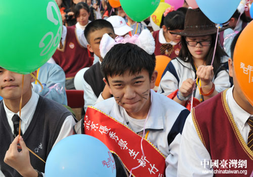 北京师生与新竹民众携手参加元宵踩街活动(图)