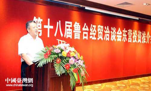 李俊峰副市长在第十八届鲁台经贸洽谈会推介东营。(图片来源:东营市台办)