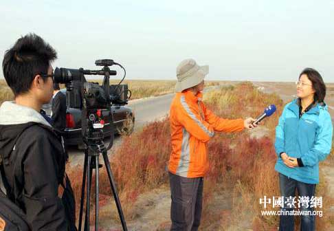 台湾中天电视台拍摄《黄河入海流》电视专题片。(图片来源:东营市台办)