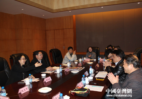 中国台湾网3月14日本溪消息 3月13日,本溪市委宣传部、市台办联合召开了申办魅力城市座谈会。台湾旺旺中时文化传媒(北京)有限公司战略事业部总监、大陆新闻中心主编萧建华、辽宁省台办宣传处处长马戈、市委宣传部常务副部李秀生、市政府副秘书长肖松岩出席了座谈会。