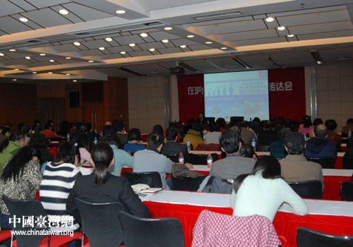 中国台湾网3月22日上海消息 3月22日上午,上海市台联、台盟上海市委在民主党派大厦6楼多功能厅联合举办2013年在沪台胞全国“两会”精神传达会。全国人大代表、上海市台联副会长张雄,全国政协委员、台盟上海市委副主委高美琴分别作传达报告,上海市台联副会长甘平主持会议,在沪台胞120余人认真听取了“两会”精神传达。