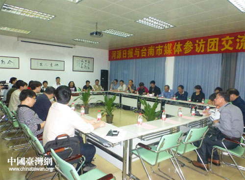 参访团与河源日报社座谈。(图片来源:广东省台办)