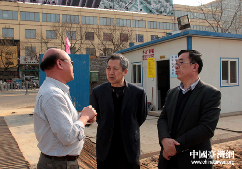 山东省、德州市台办负责同志在工地听取台上介绍相关情况。(图片来源:德州市台办)