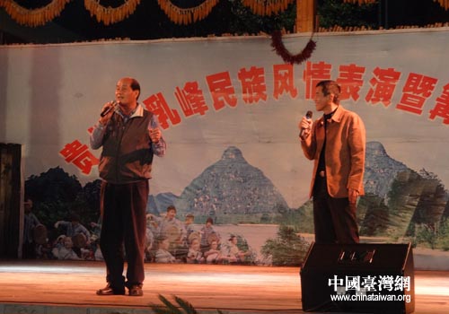 台湾客人也上台跳起了他们的民族舞蹈,唱起台湾少数民族歌曲,与布依族姑娘和小伙交流互动。交流协会的常务监事杨德金先生是阿美族的酋长,多才多艺且风趣幽默。他上台拿出早已准备的梳子朝着自己的头幽默地梳了梳头发,赢得台下观众阵阵笑声。他还与儿子合唱歌曲《草原上升起不落的太阳》把文艺晚会推向了高潮。(中国台湾网黔西南台办通讯员 李席虎)