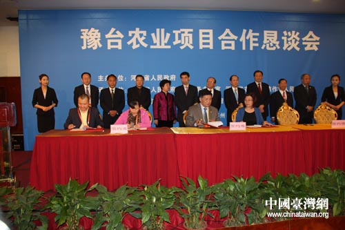 会上,共集中签约了焦作市海峡两岸科技合作中心项目、焦作市台湾精致农业示范园项目、焦作市台湾养生食品园项目、永城市小麦产业链深加工食品园区项目等10个豫台农业合作项目,项目总投资38.85亿元人民币。