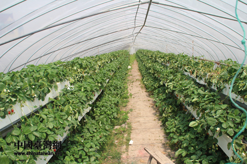 金龙门生态园草莓立体种植基地一棚。(黔南州台办张荣周、王斌 摄)