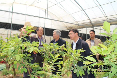 罗主任一行参观生态园台湾火龙果芭乐种植基地。(黔南州台办张荣周、王斌 摄)