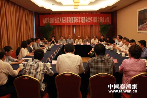 台湾海基会副董事长兼秘书长高孔廉一行参加绵阳台商代表座谈会。(图片来源:绵阳市台办)