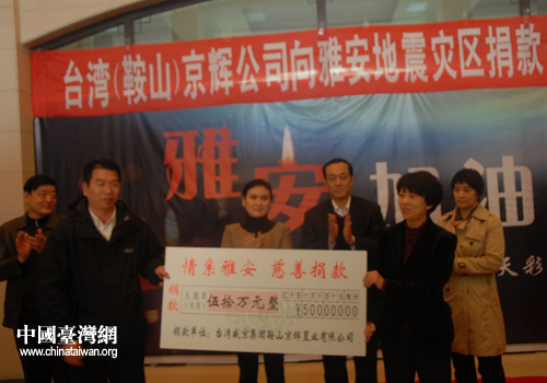 台企鞍山京辉置业有限公司向雅安灾区捐款