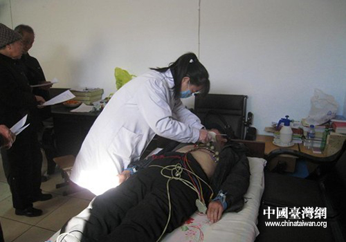 医护人员为老人们听心脏、做心电图。(图片来源:郑州市台办)
