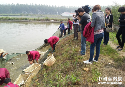 中国台湾网6月6日六安消息 日前,台湾TVBS《中国进行式》栏目摄制组一行来六安市霍邱县马店乡溜山村,对该村鱼鳖养殖年轻人朱治连进行了专题采访。