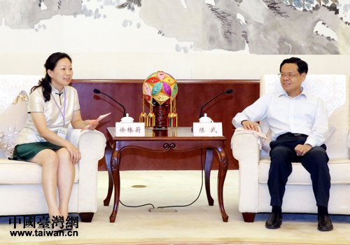 广西壮族自治区主席陈武会见台湾花莲县参访团一行。(图片来源:广西台办)