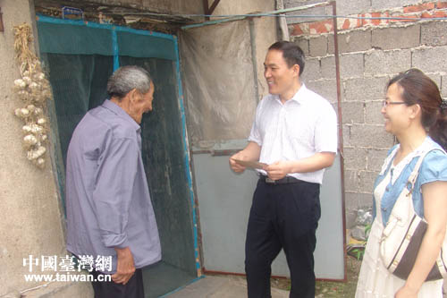 中国台湾网7月2日临沂消息 “七一”建党92周年来临之际,临沂市台办副主任徐志刚带领有关人员6月27日到“第一书记”任职村兰山区枣沟头镇谭庄社区,走访慰问10名老党员和生活困难党员。