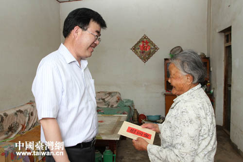 中国台湾网7月2日东营消息 7月1日,东营市台办主任徐峰到下派帮扶的河口区新户镇龙泉村走访慰问老党员,为他们送上节日的祝福。
