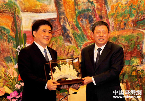 上海市长杨雄会见台北市长郝龙斌一行。(上海市台办 常志康 摄)