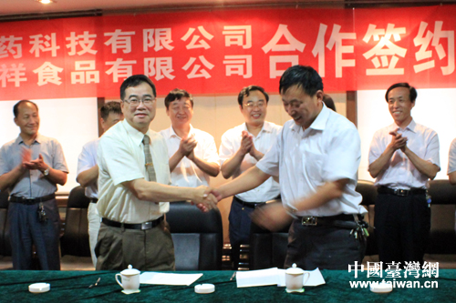 中国台湾网7月16日滨州消息 7月13日,山东滨州市邹平长山山药科技有限公司与台湾葆祥食品有限公司签署合作协议,合作开发山药新产品。滨州市台办主任刘宗玉、副主任孙学锋,邹平县副县长张凯出席签约仪式。