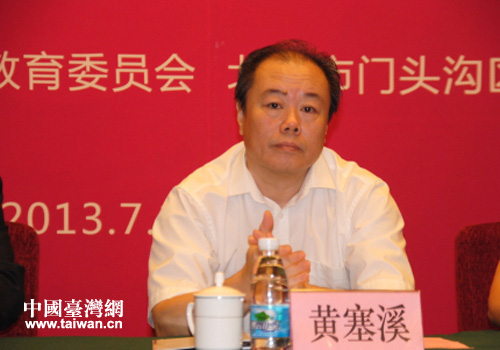 中国台湾网7月16日北京消息 7月15日,京台青少年教育研讨会在北京市门头沟区举办,北京市台办副主任黄塞溪、门头沟区副区长李昕和北京市台办、门头沟教工委等有关部门负责人以及来自台湾的38位中小学校长、北京市200位中小学校长参加了研讨会。