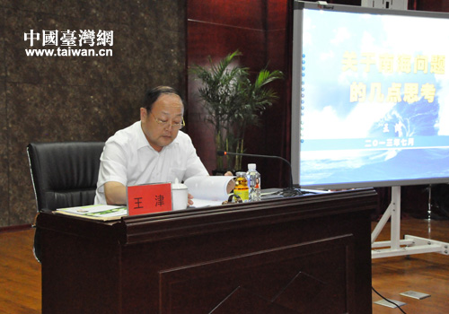 王津围绕不同时期台海问题的发展演变过程、党中央在台海问题上的战略指导思想、台海问题的可能走向等内容进行了深入浅出的讲解。他站在国际与地区和平发展的高度,通过运用大量详实的图片为大家展现了一幅包括宝岛台湾在内的祖国寥阔海疆的美丽图景。