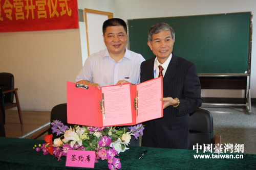 两校校长签订姊妹学校备忘录。(图片来源:嘉兴市台办)