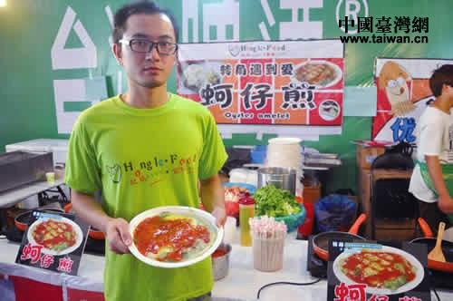 啤酒节上的人气台湾小吃——蚵仔煎。(图片来源:青岛台办)