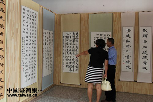 与会学者参观书法展。(图片来源:贵阳市台办)