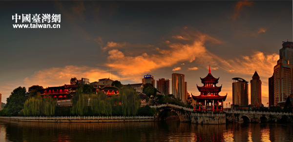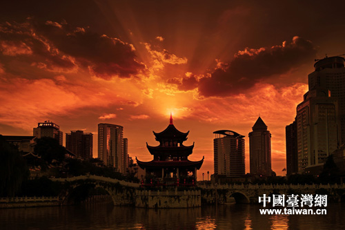 夕阳中的甲秀楼。(图片来源:贵阳市台办)