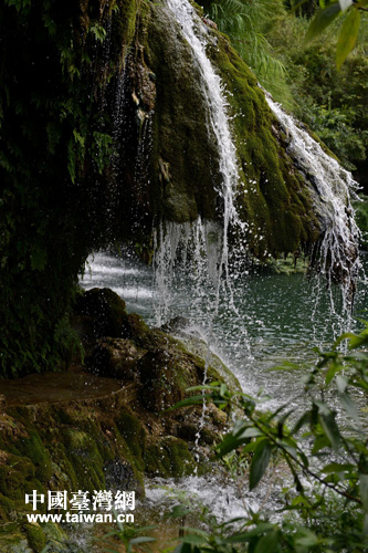 中国台湾网贵阳消息 9日上午,2013’海峡两岸摄影记者爽爽贵阳采风活动团来到了风景如画的天河潭自然景区。这里兼具黄果树瀑布之雄、龙宫之奇与花溪之秀,集飞瀑、清泉、深潭、奇石、怪洞与天生石桥于一身,浑然天成;农舍水车,小桥流水,野趣盎然,清幽宜人。