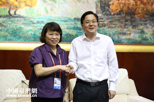 南宁市长周红波(右)会见中国国民党副主席、台湾嘉义市市长黄敏惠。(图片来源:南宁市台办)