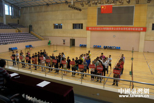 中国台湾网9月10日镇江消息 日前,江苏省镇江市丹徒区台湾同胞投资企业协会迎中秋羽毛球友谊赛在丹徒区体育馆成功举办。市、区台办、区文体局等领导出席开幕式。区台协会会长高明华在开幕式上致辞。