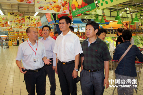葫芦岛市政协副主席刘德兴、市台办主任刘志新等一行在大润发葫芦岛店总经理谷宇宏的陪同下视察大润发超市。(葫芦岛市台办供图)
