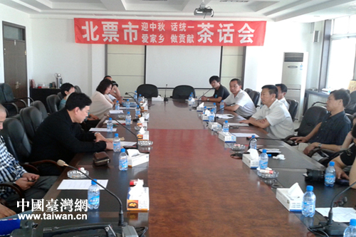 中国台湾网9月17日北票消息 9月13日上午,秋风送爽,在中华民族传统佳节——中秋节来临之际,北票市台胞台属在朝阳银行北票支行五楼会议室欢聚一堂,由市委统战部举办的“迎中秋、话统一、爱家乡、做贡献”茶话会在融洽而欢乐的氛围中进行。