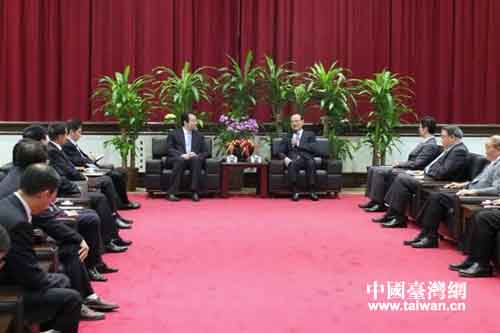 中国湖南省委常委、宣传部长许又声在台北拜会中国国民党副主席林丰正。(王敏杰 摄)