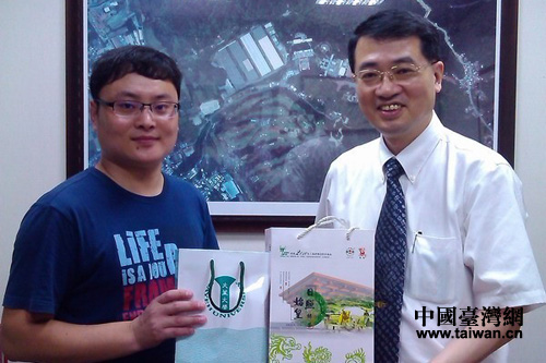 台湾大叶大学校长武东星会见赵建老师。(青岛台办供图)