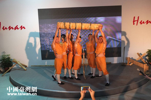 湖南益阳安化制茶汉子台北现场献艺。(湖南省台办 康衡 摄)