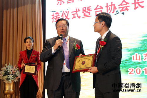 中华两岸交流协会会长刘宗明出席交接仪式并致辞。(东营市台办供图)