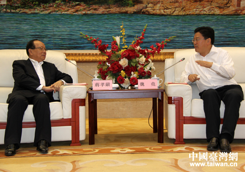 马鞍山市委副书记、市长魏尧会见来访的中国国民党副主席蒋孝严。(图片来源:马鞍山市台办)