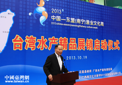 台湾海峡两岸农业渔业交流协会理事长林享能致辞。(图片来源:广西台办)