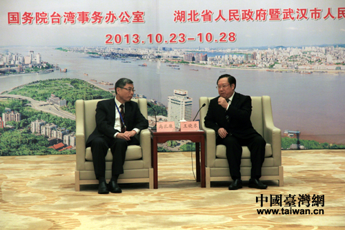 10月23日晚,湖北省委常委、常务副省长王晓东会见高孔廉。(中国台湾网 马迪 摄)