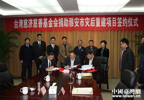 台湾慈济慈善事业基金会援建雅安灾后重建项目正式签约。(图片来源:雅安市台办)