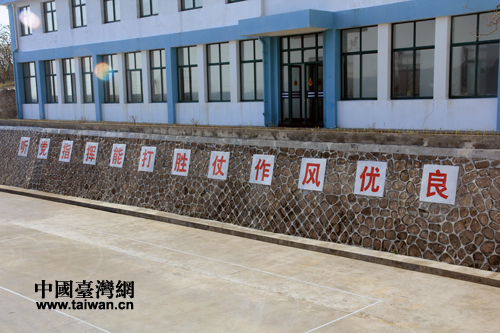 日前,记者随“万里海疆巡礼”采访团登上位于浙江省东南海域的南麂列岛主岛——南麂岛,探访东南沿海一线官兵的工作生活。图为战士们亲手所写的标语。(中国台湾网 马迪 摄)