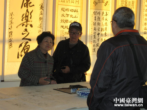 客人们参观青岛城阳区夏庄社区居民书画展示室。(青岛台办供图)
