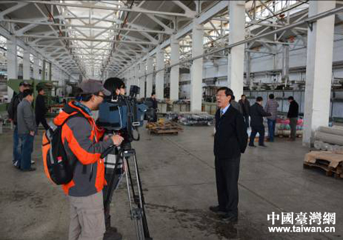 台湾媒体专访台协会会长王金销。(图片来源:济南市台办)