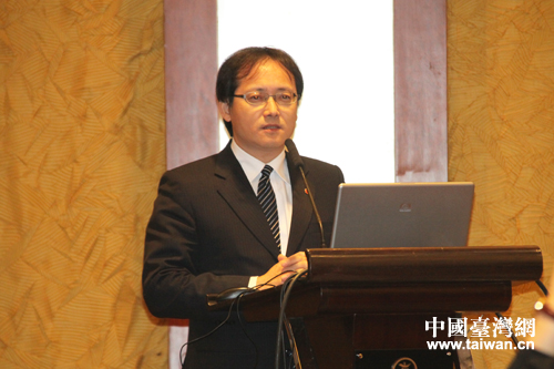 海峡两岸经贸交流协会会长王辽平致辞。(中国台湾网 郭庆娜 摄)