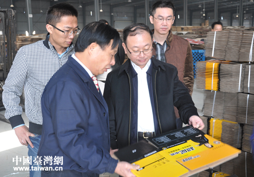 欧阳泉华一行在上高成志包装材料调研。(图片来源:江西省台办)